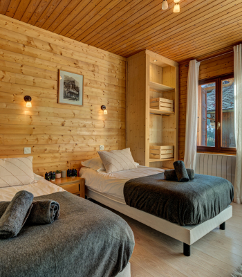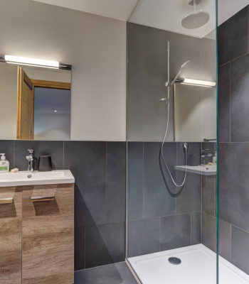 Chalet Shreddie is a beautifully renovated barn, built in the Summer of 2019 to a very high standard. The chalet sleeps 12 people comfortably across 5 huge bedrooms all with ensuite bathrooms. There is a fixed double bed in the top floor bedroom, 3 double/twin rooms, and 1 family room which sleeps 4. The family room also benefits from having a separate TV.