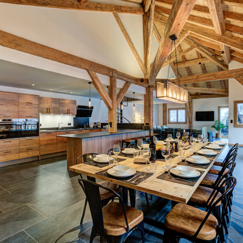 Featuring an open plan kitchen, living and dining area, 5 bedrooms with ensuites, a large tv area, ski/boot room, hot tub and terrace, this chalet has it all.